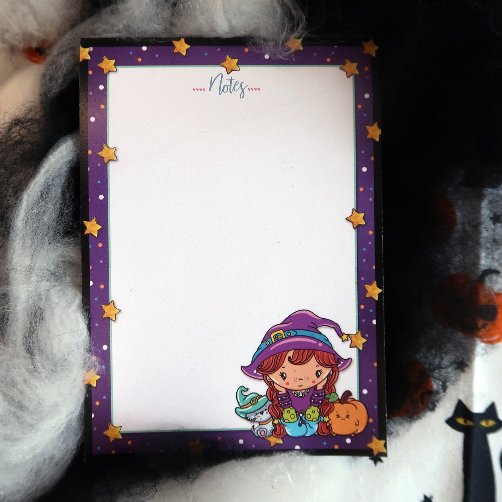 A pretty A6 sized memo pad featuring Hattie the witch.