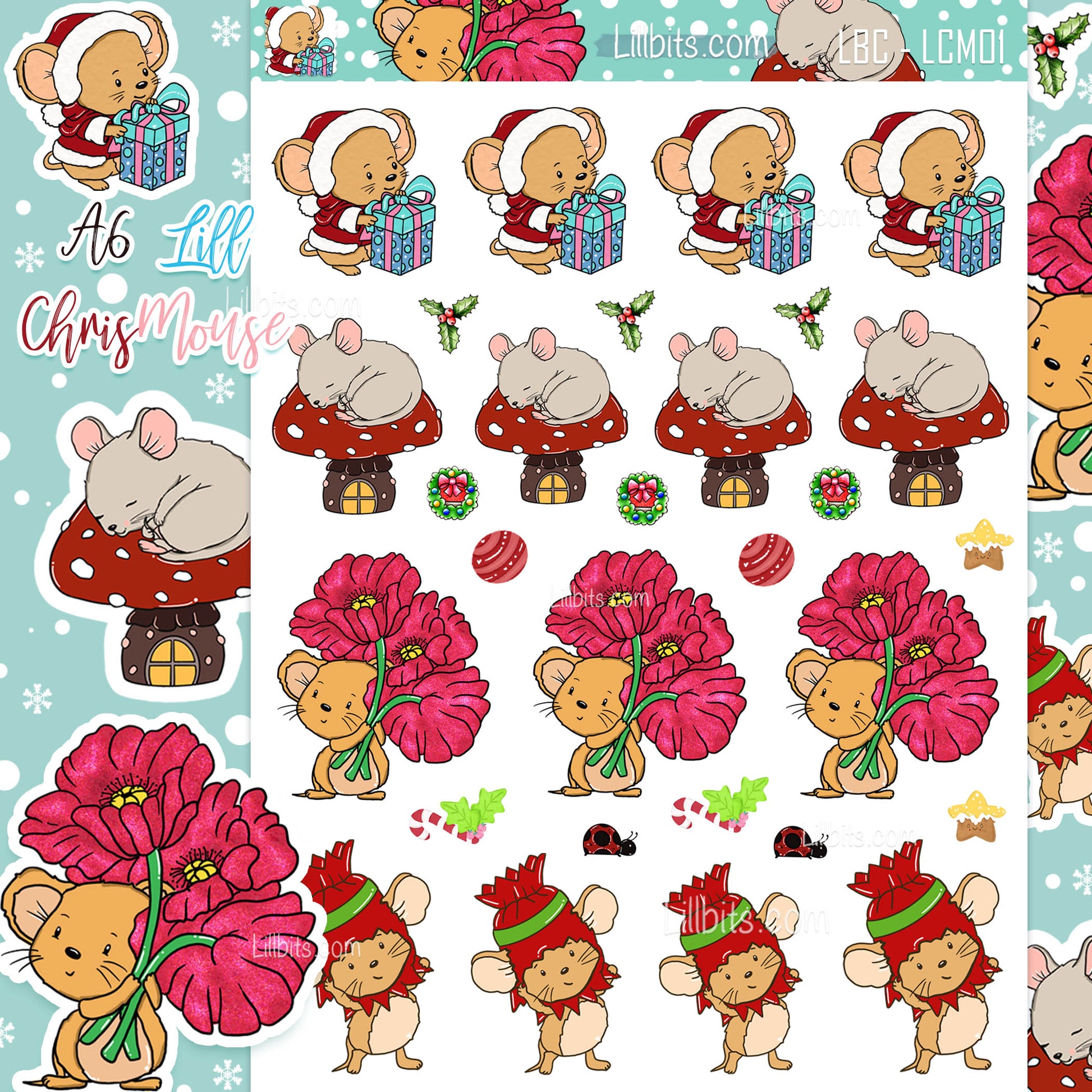 A charming A6 sticker sheet featuring 4 adorable mice ready to snuggle down for Christmas.