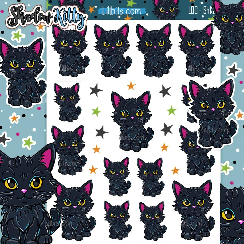 A charming lill black kitty called Shadow. Perfect for adding to your planners, journals or outgoing happy mail. This is an A6 sized sticker sheet.