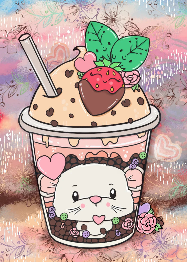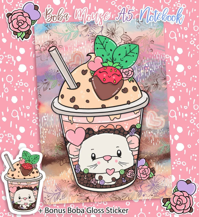 A pretty A5 printed notepad featuring Boba Mouse + BONUS matching gloss sticker.