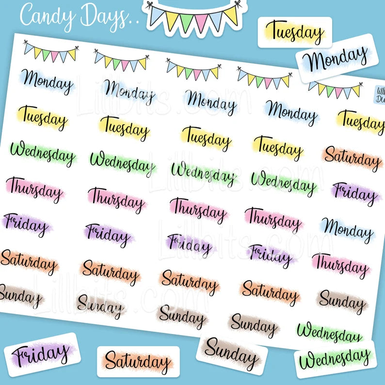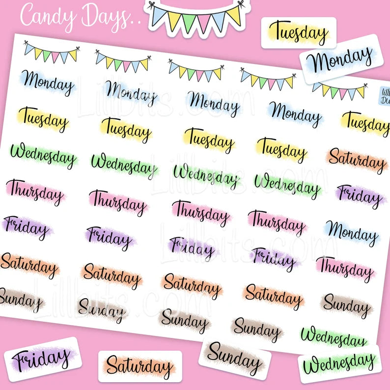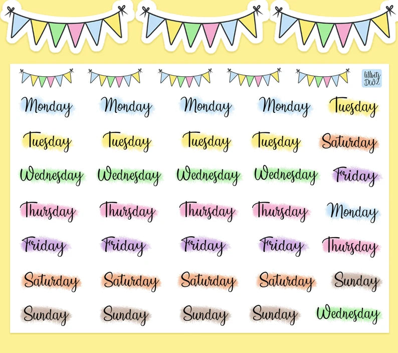 Featuring 5 copies of each Day Monday through to Sunday and extra little bunting elements across the top of the sheet.