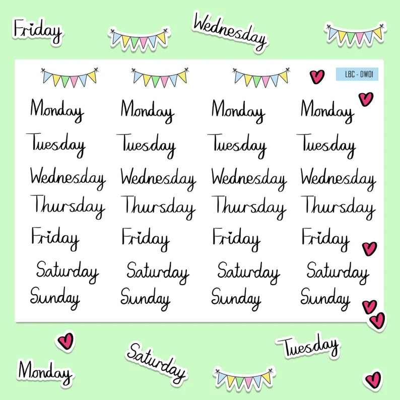 A lovely collection of useful Days of the Week and Months of the Year Lillbits hand drawn font stickers to add to your collection.