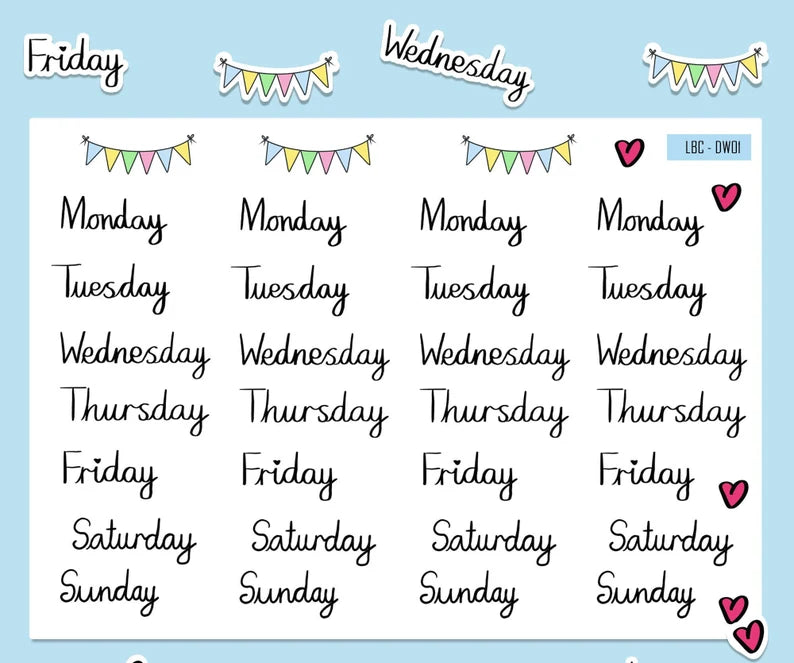 Featuring 2 x Days of the Week A6 sticker sheets and a set of months of the Year stickers (spread across 2 sheets) - this is a must have for your planners, journals and to working spreads. 4 sheets in total - offered at a discounted price.