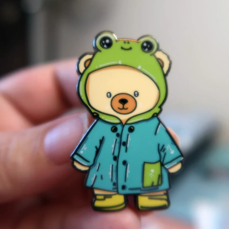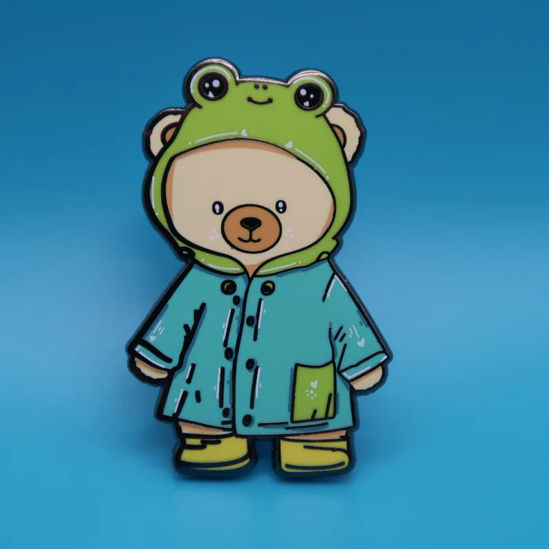 This lill bear enjoys wearing his waterproof Froggie coat on his daily outings.