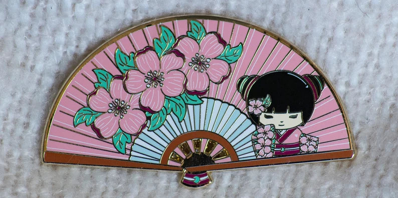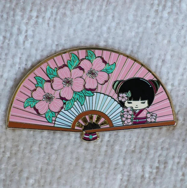 A gorgeous Geisha Fan - Sakura inspired - hard enamel - pin featuring original artwork by lillbits with amazing detail and lovely overall quality.