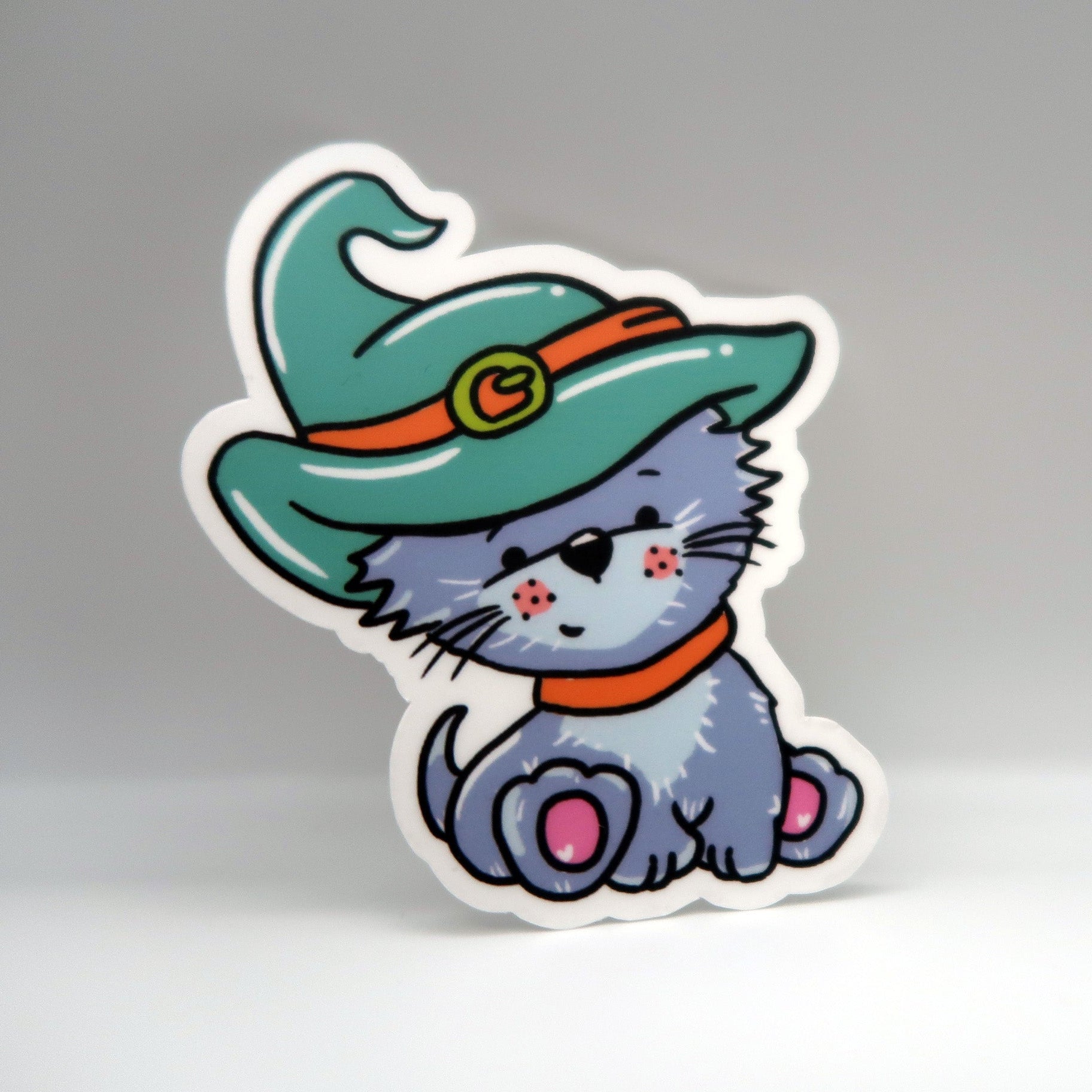 This die cut is 2.5 inches tall by 2 inches wide. Waterproof so you can add Hallow Kitty to your waterbottles, laptops, journals or happy mail post.