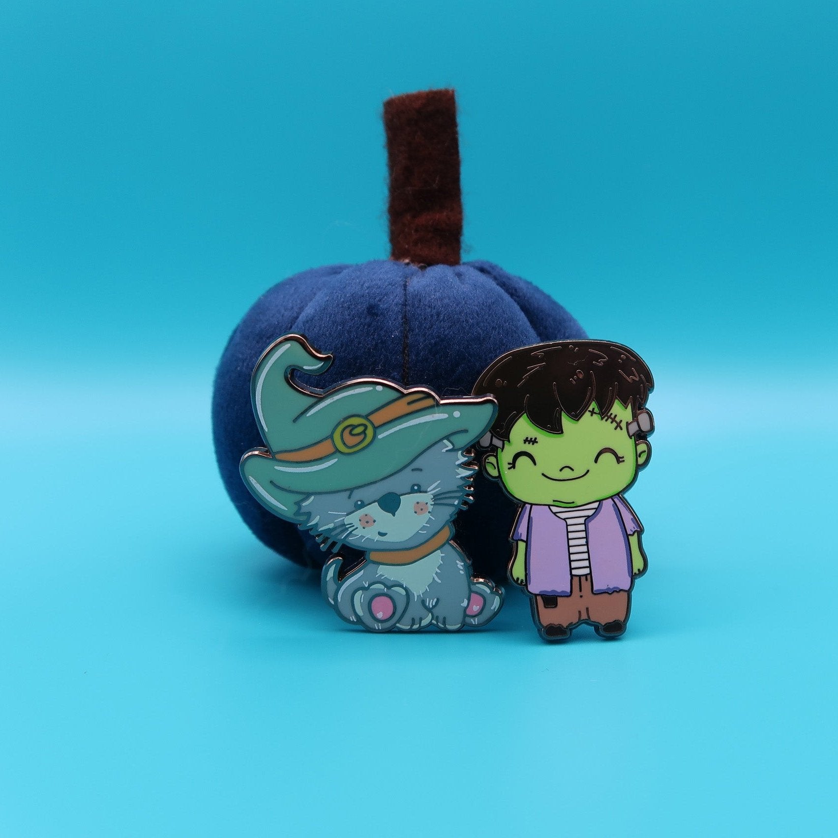Seen here with his friend Frankin boy - lill Hallow Kitty is a super cute 1.5 inch hard enamel pin with extra screen print detail.