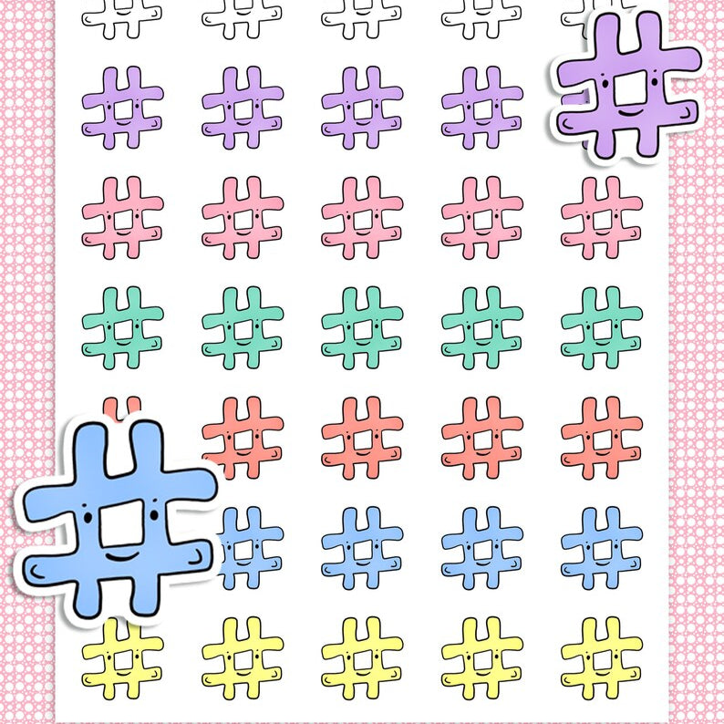 Featuring 35 hashtag kiss cut stickers printed onto premium matt vinyl sticker paper with the overall sticker sheet sized at A6.