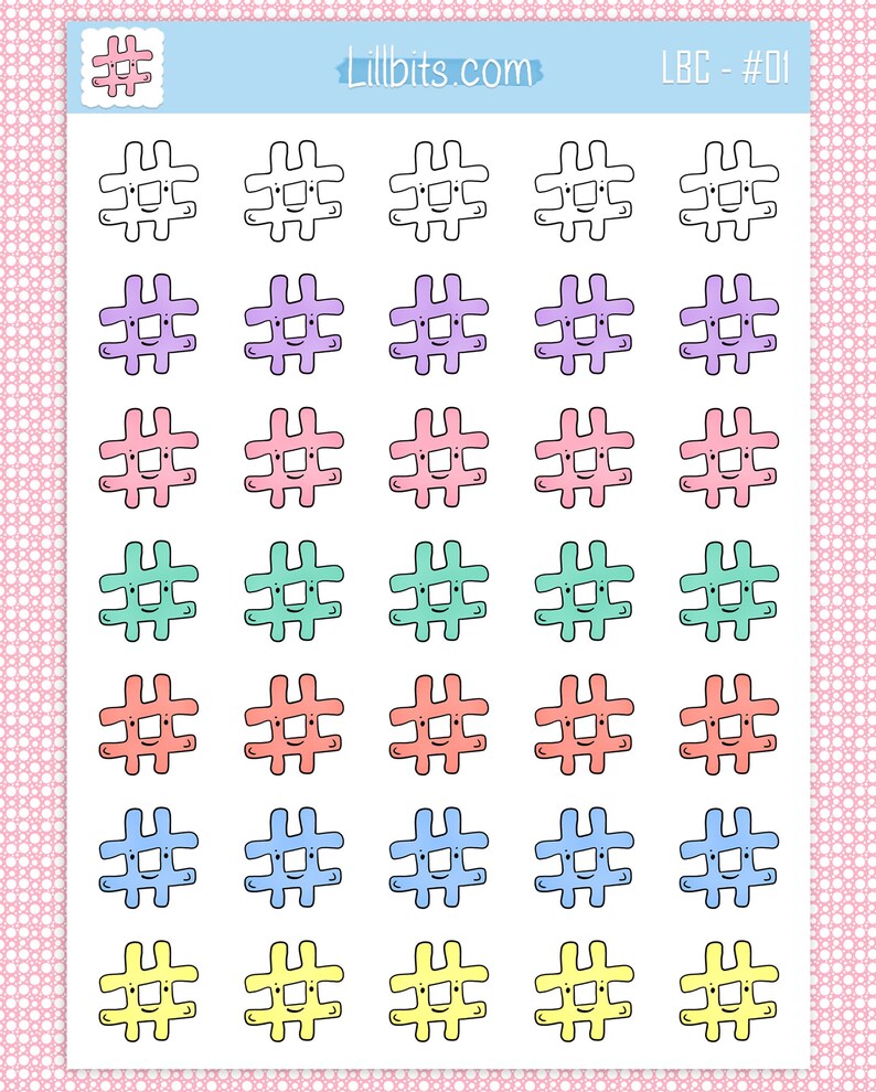 A super cute lillbits original hand drawn hashtag cutie to add to your planner collection.