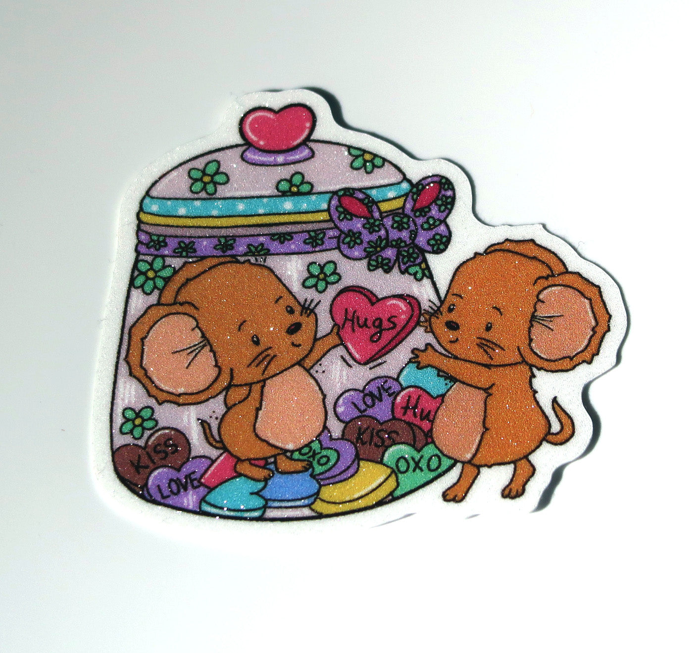 This adorable die cut sticker features the two little mice in their Jar of Hugs.