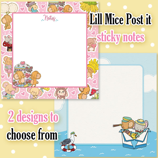 Featuring 2 lill mice designs - 50 pages of peel and stick post its and sized at a handy square 10cm x 10cm.