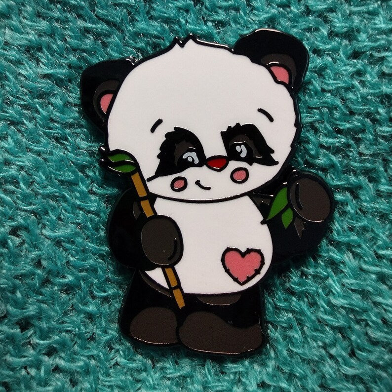 This cute Panda Boo enamel pin is sized at 1.5 inches, with black nickel plating.