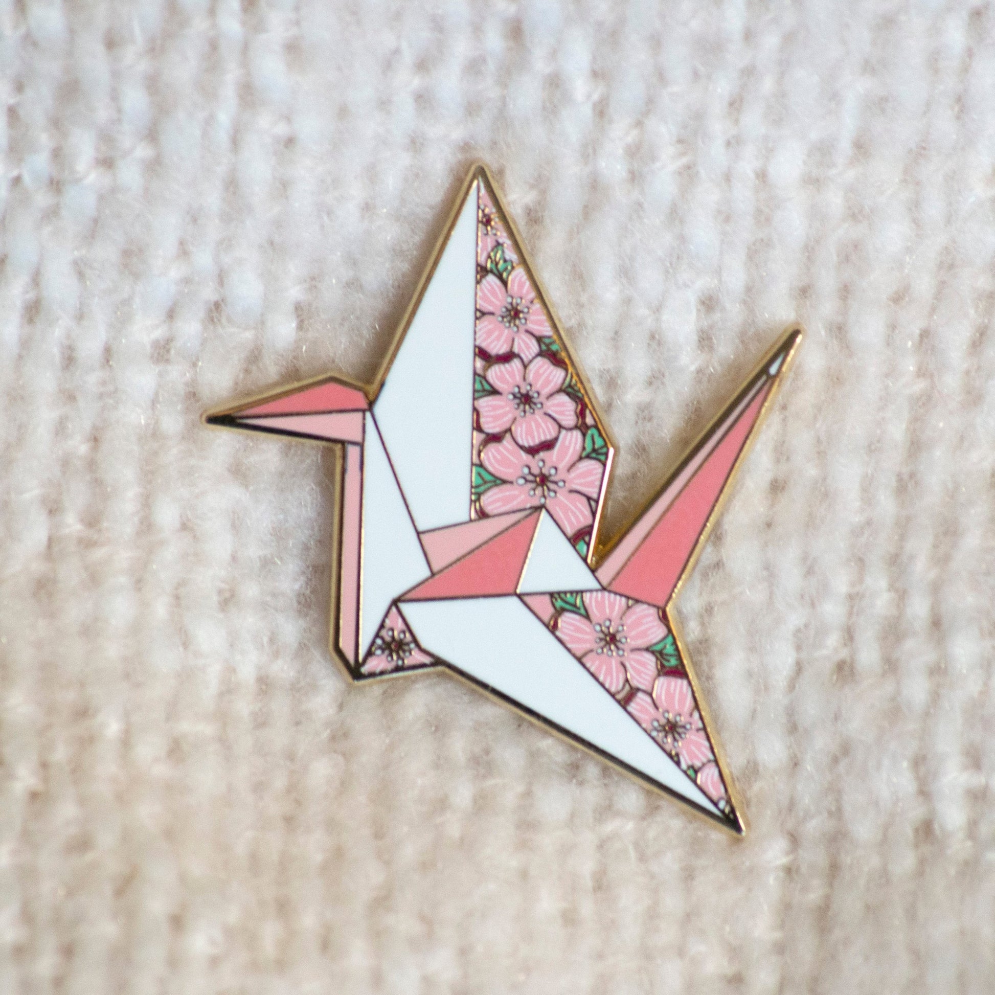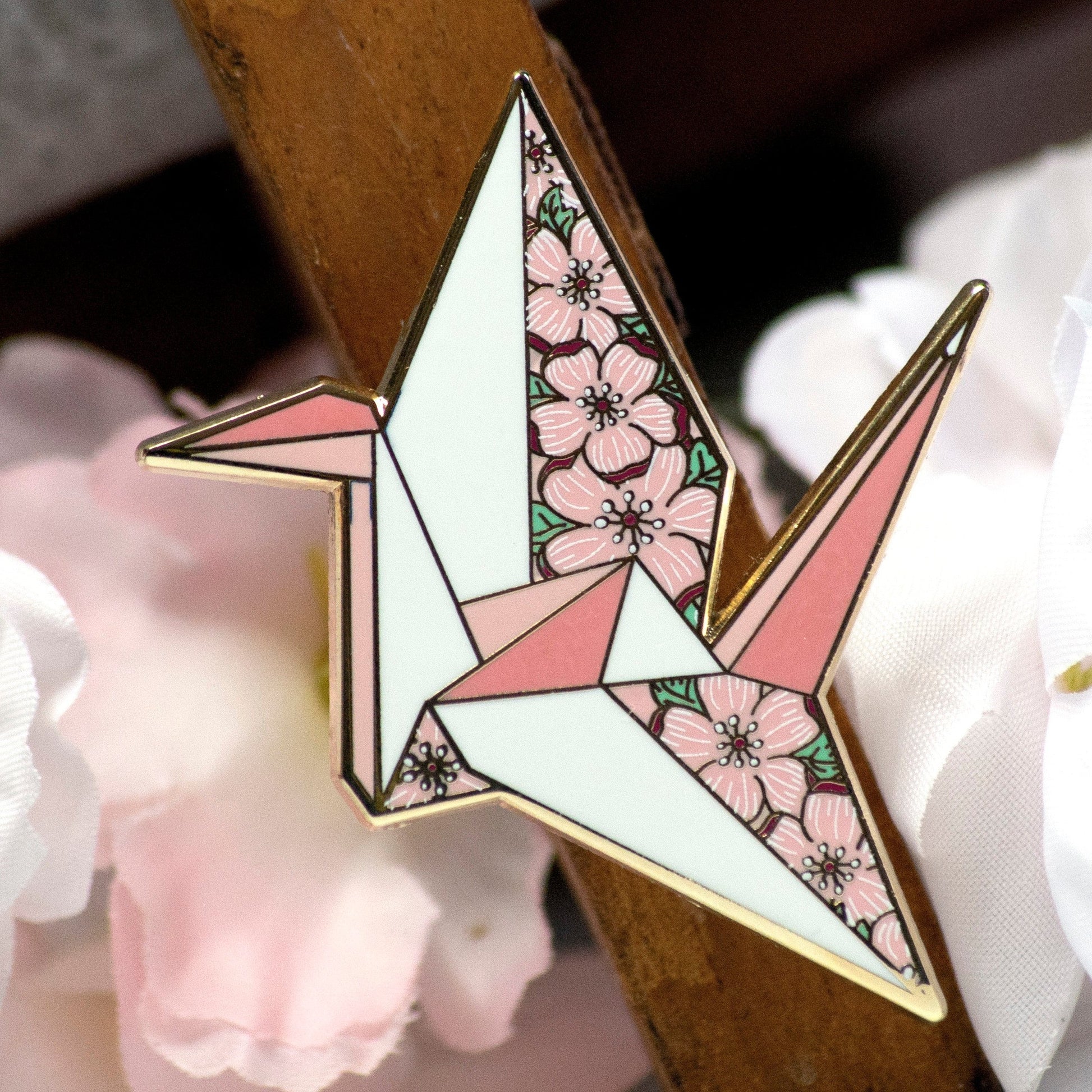 Introducing a simply gorgeous Sakura themed origami crane hard enamel pin - featuring original artwork by lillbits with amazing detail and lovely overall quality.