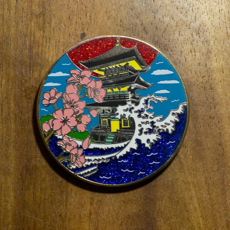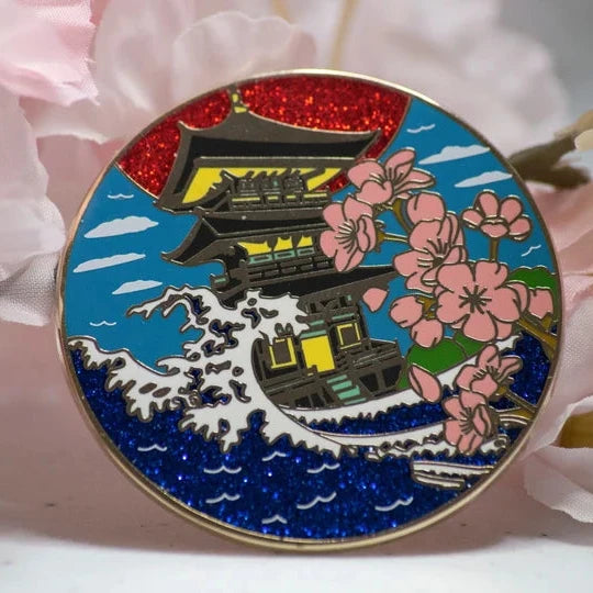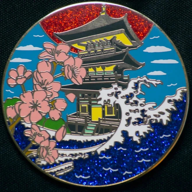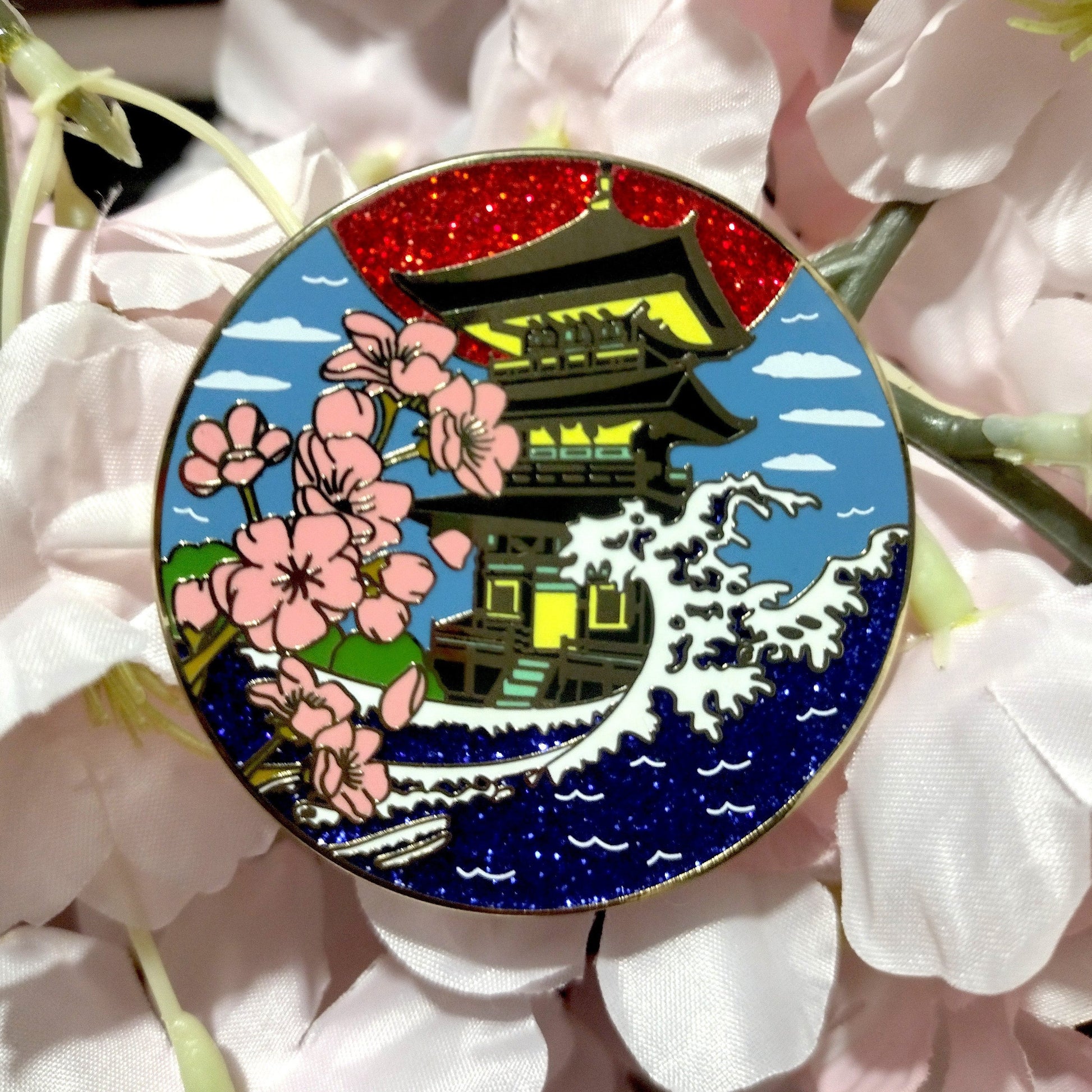 A delightfully Deluxe edition Sakura temple hard enamel pin just waiting to join your growing pin collection.