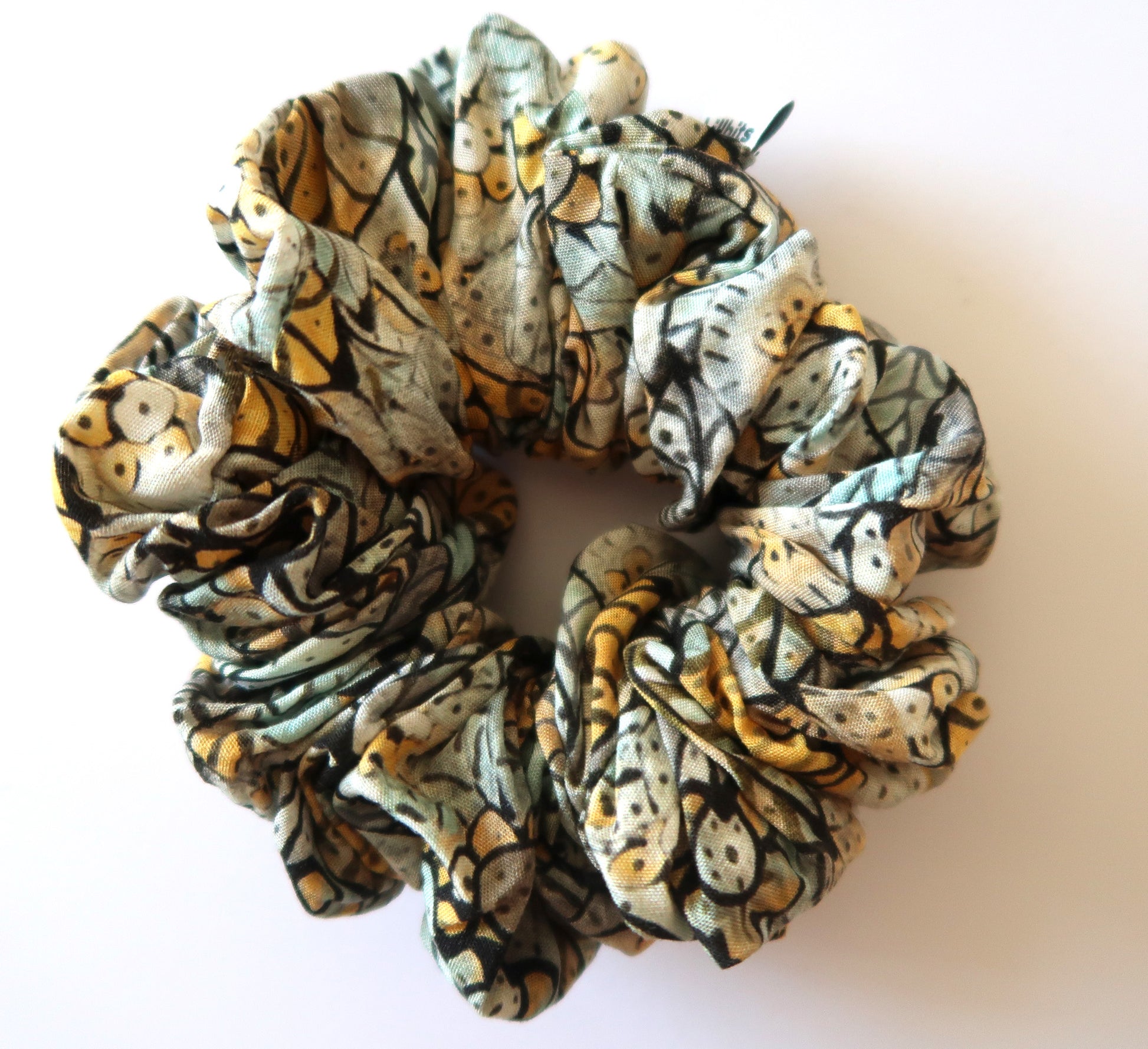 Layla is a pretty leaf print Viscose mix fabric scrunchie available in 4 scrunchie size options: