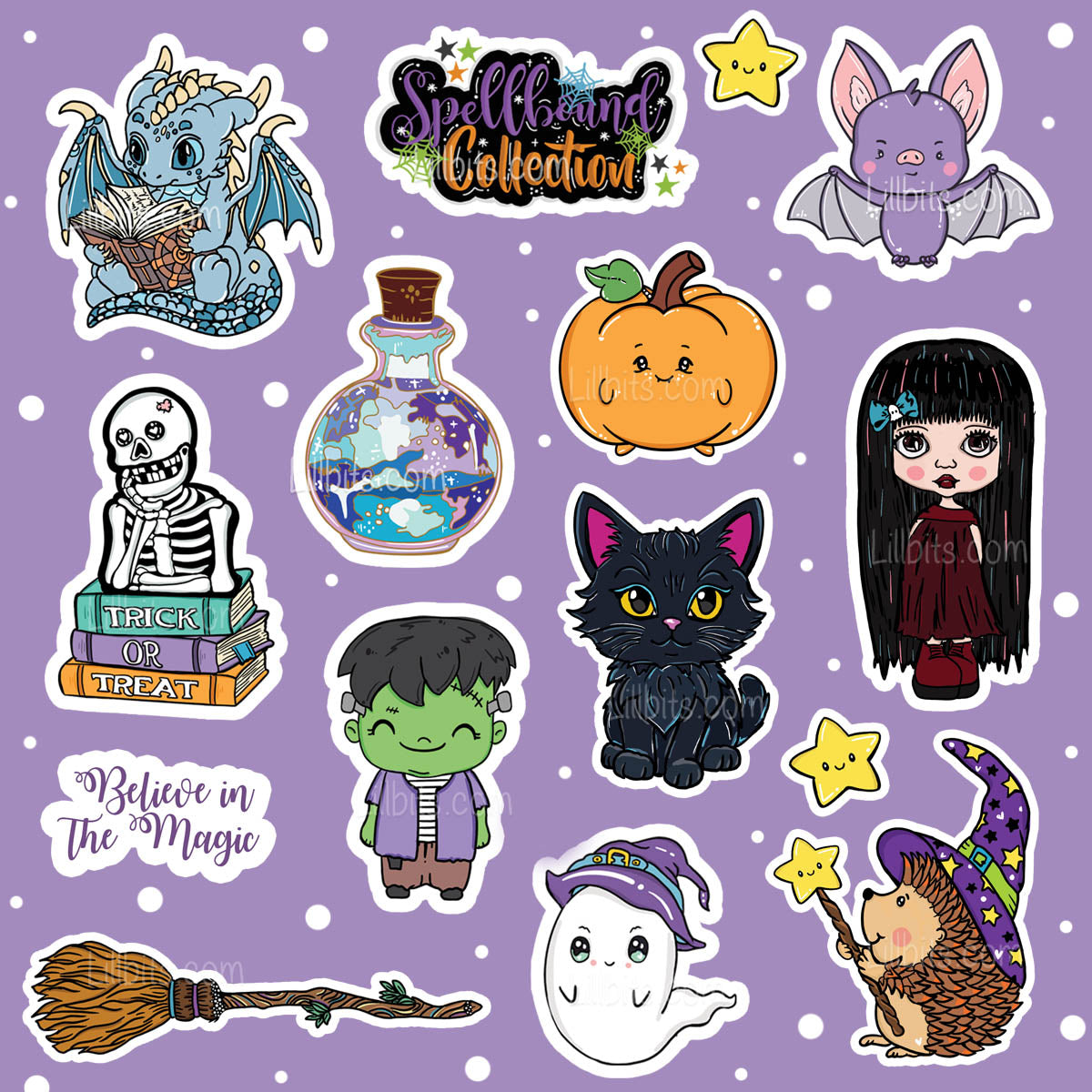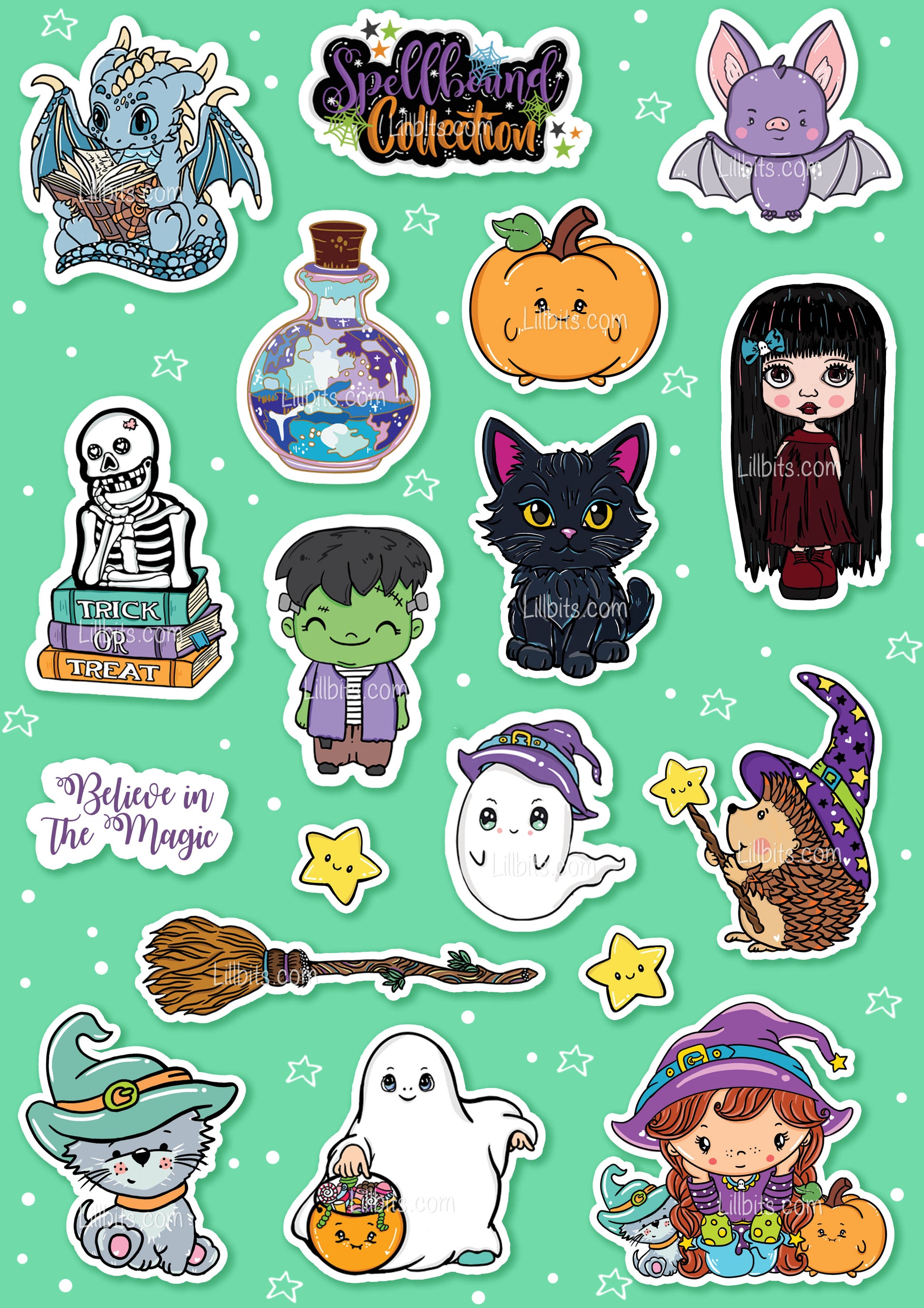 A gorgeous collection of 14 Halloween/Magic themed character stickers with extra embellishments and signs.