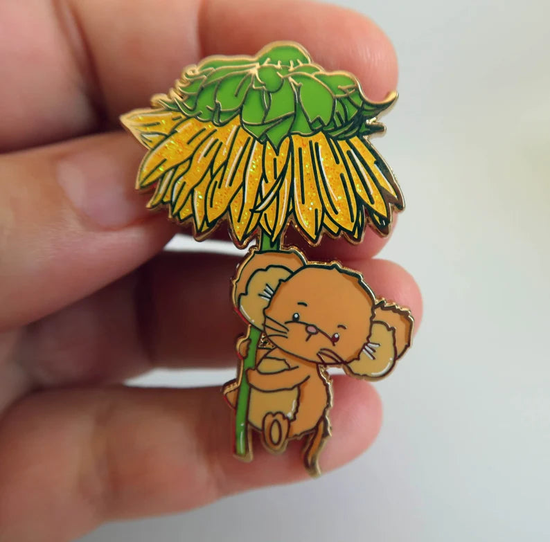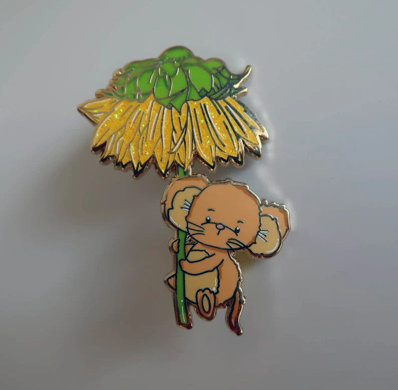 This cute lill mouse is happily catching his own sunflower in this gorgeous enamel pin design.