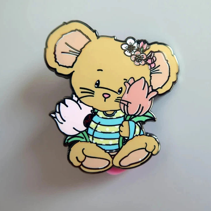 This cute pin features lill Tulip hugs the mouse who loves to spend time picking tulips.